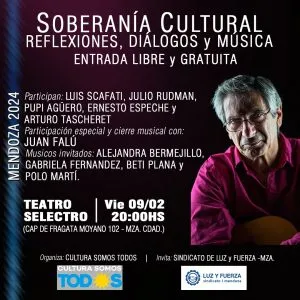 Este viernes 9 de febrero, en el Teatro Selectro de la Ciudad, se realizará el evento denominado “Soberanía Cultural, reflexiones, diálogos y música”.