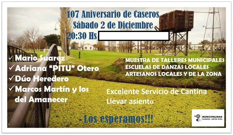 En comunicación con el intendente de Caseros, Alejandro Farias mencionó en LT11 que este sábado a partir de las 19 horas darán comienzo a las actividades y exposiciones de artesanos. En tanto a las 20.30 horas bailarán grupos de danzas y actuarán Mario Suárez; Adriana “PITU” Otero; Dúo Heredero; y Marcos Martín y Los del Amanecer.