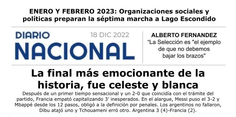 LRA 1 Buenos Aires - SERA ENTRE ENERO Y FEBRERO: Organizaciones sociales y políticas preparan la séptima marcha a Lago Escondido