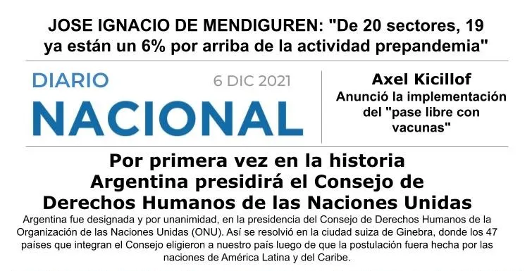 El gobernador bonaerense, anunció que la provincia aplicará, a partir del 21 de diciembre, el “pase libre con vacunas”, para quienes asistan a eventos masivos y realicen trámites a puertas cerradas. Los mayores de 13 años deberán acreditar la vacunación con dos dosis a través de las aplicaciones Vacunate Buenos Aires, Mi Argentina o con la obtención del carnet físico.