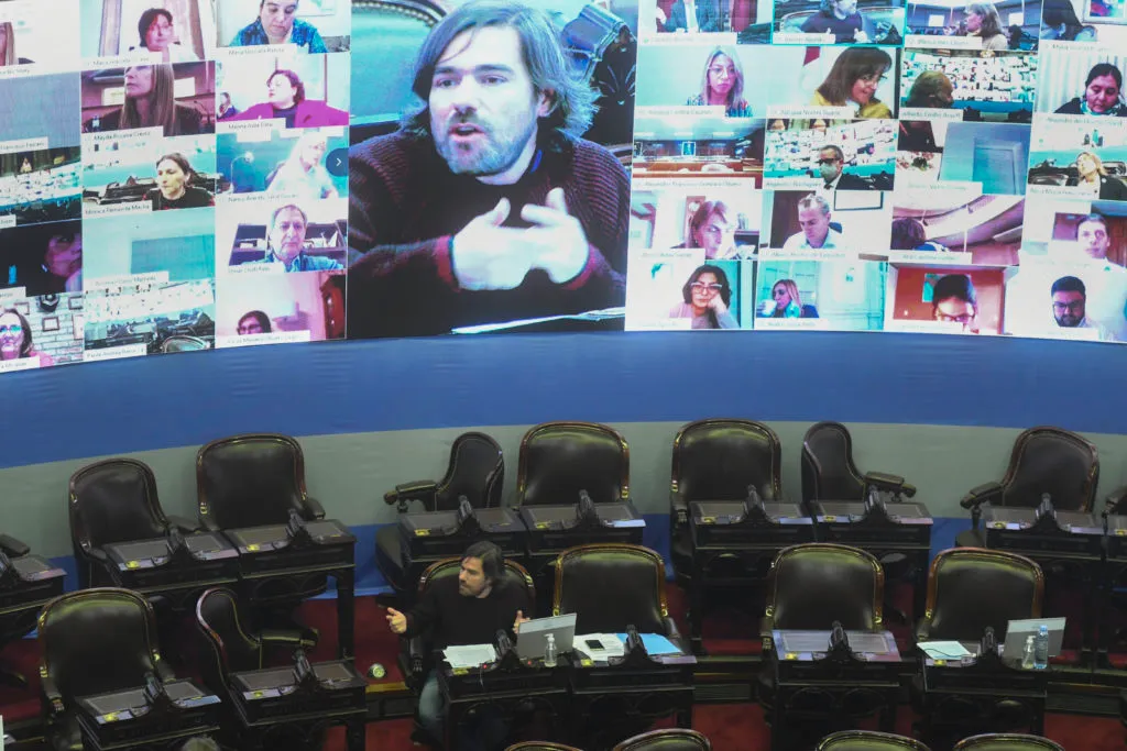 - Buenos Aires: El diputado Nicolás Del Caño durante el debate de manera remota de la Cámara Baja que busca sancionar un proyecto que regula la teleasistencia y la prescripción digital de las recetas y estudios médicos, así como una iniciativa que habilita la educación a distancia. Foto: Raúl Ferrari/Télam/aa 21052020