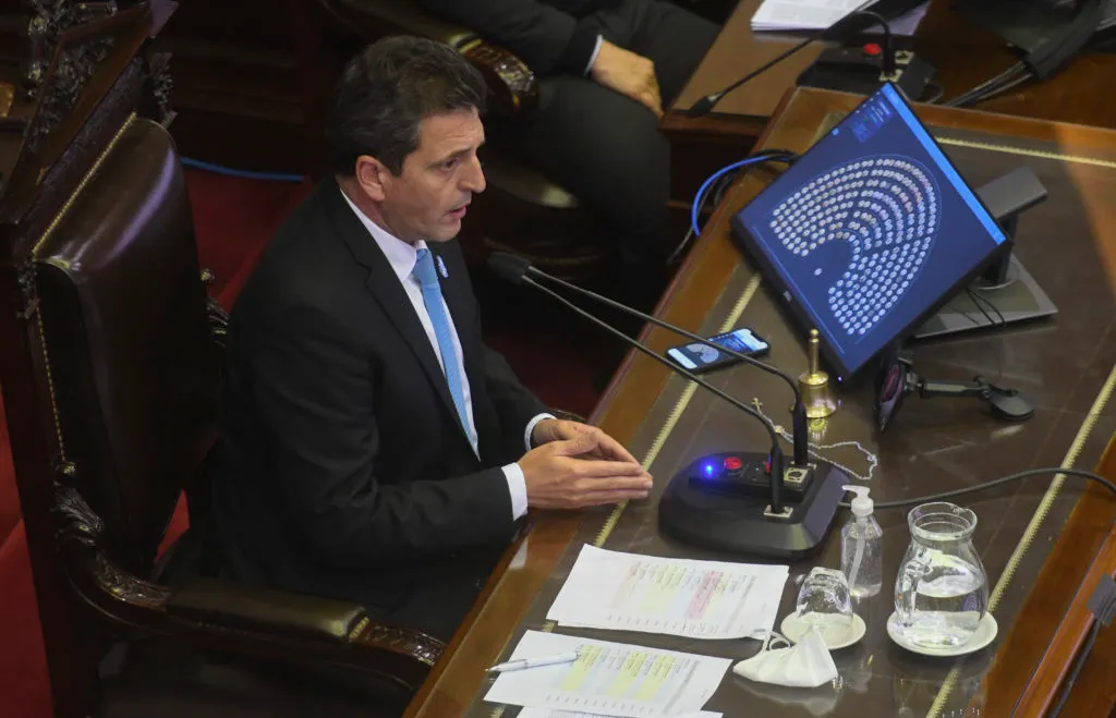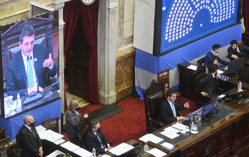 - Buenos Aires: El presidente de la Cámara de Diputados, Sergio Massa, durante la sesión remota donde se debate un proyecto que regula la teleasistencia y la prescripción digital de las recetas y estudios médicos, así como una iniciativa que habilita la educación a distancia. Foto: Raúl Ferrari/Télam/aa 21052020