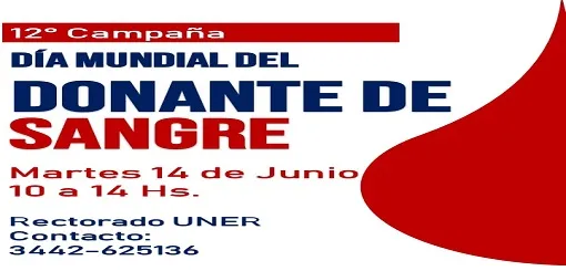Paula Soto del Banco de sangre del Hospital Urquiza , dijo en LT 11 que para conmemorar el día Mundial del donante de Sangre habrá una campaña el martes de 10 a 14 en el edifico del Rectorado de UNER , frente a Plaza Ramírez. Agregó que aquel que desee donar y tenga algunas dudas puede comunicarse unos días antes con el Banco al 3442 625136.