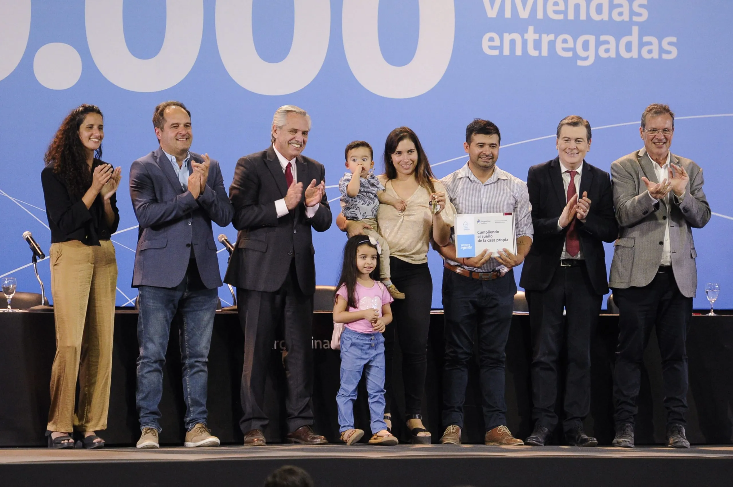 Junto al gobernador santiagueño Gerardo Zamora y los ministros de Desarrollo Territorial y Hábitat y de Cultura, Santiago Maggiotti y Tristán Bauer, respectivamente, Fernández entregó 575 viviendas, con las que se alcanzaron las 100.000 adjudicadas en todo el país desde el 10 de diciembre de 2019.