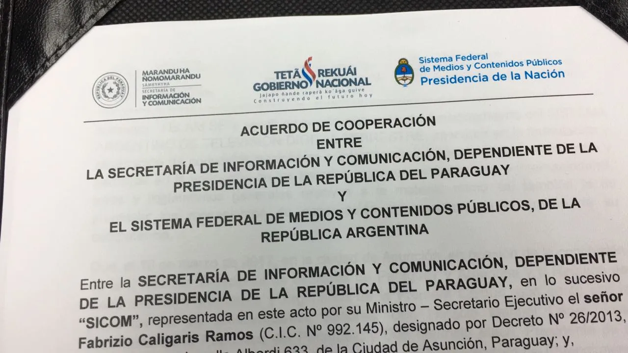 RADIO NACIONAL EN ASUNCIÓN INSTITUCIONAL 29/09/2017 El Sistema Federal de Medios Públicos firmó un acuerdo de cooperación con su par de Paraguay