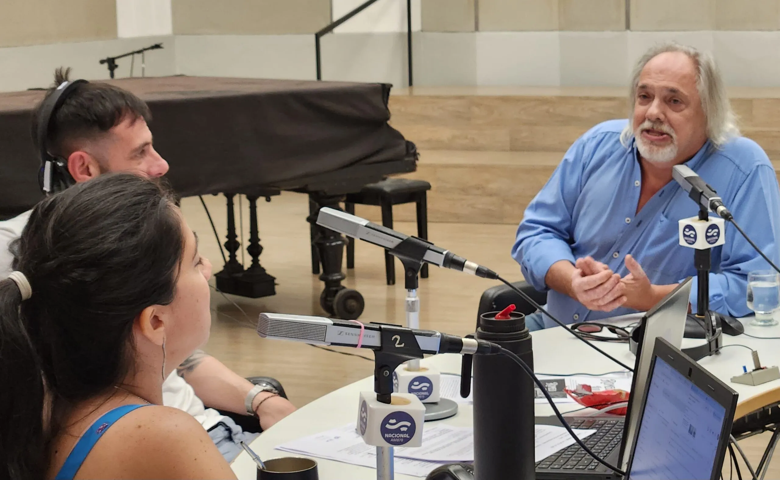 De Benedetti visitó los estudios de Radio Nacional y conversó con el equipo de Nunca es tarde.