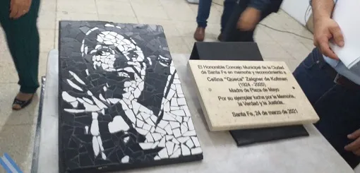 El Honorable Concejo Municipal de la ciudad de Santa Fe descubrió este mediodía la obra de arte de María Luisa Heredia y la placa conmemorativa en homenaje a Celina "Queca" Zeigner de Kofman, en el marco de rememorarse el Día Nacional de la Memoria por la Verdad y la Justicia a 45 años del golpe cívico militar.