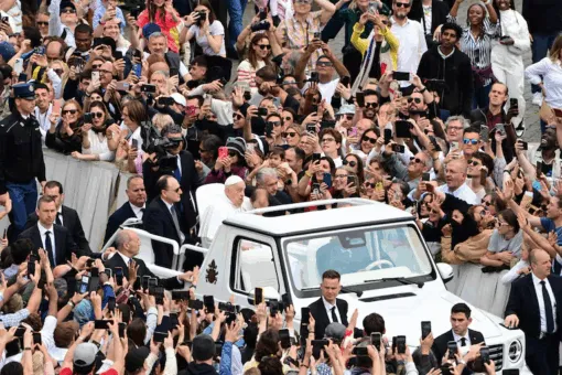 Stanco ma contento, il Papa ha ringraziato il suo assistente sanitario personale, Massimiliano Strappetti "Grazie per avermi riportato in piazza".