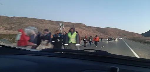 Salieron hace varios días desde la localidad de Cobres departamento La Poma. Histórico lugar por donde pasó Felipe Varela. Se van sumando desde las diferentes localidades y las y los peregrinos van caminando por la Ruta nacional 51 a la altura de Muñano.