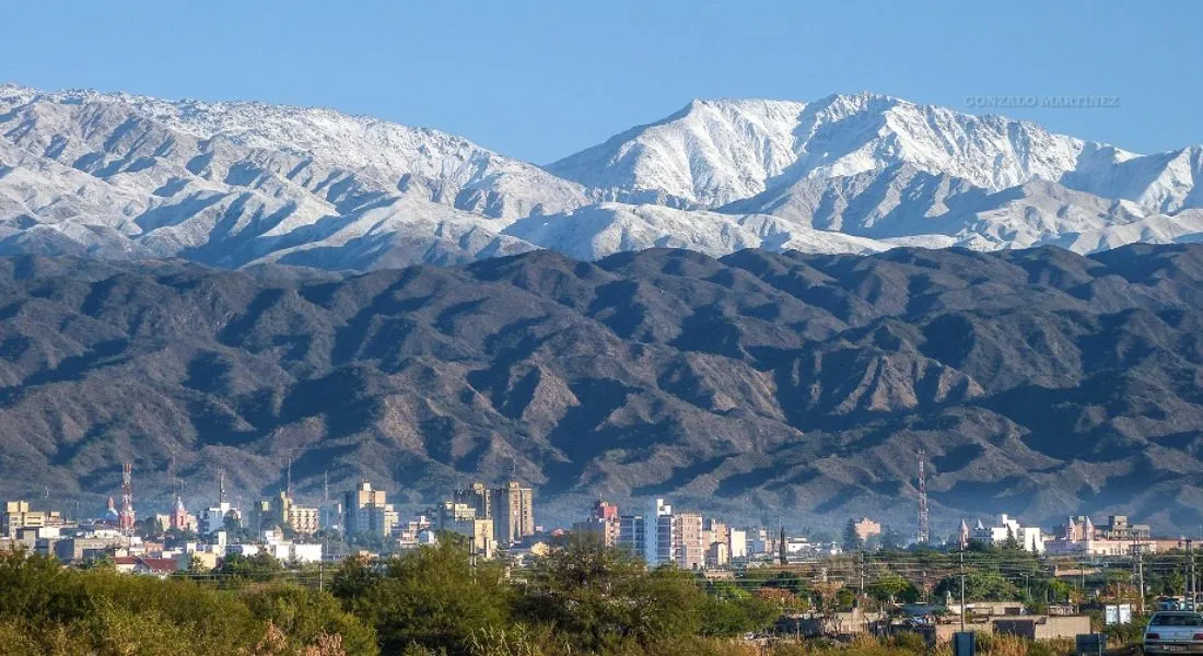 Ciudad de San Fernando del Valle de Catamarca. De fondo, las sierras Colorado y Ambato-Manchao