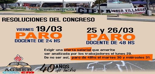 El Congreso virtual de AGMER definió paros para hoy, 25 y 26 de marzo