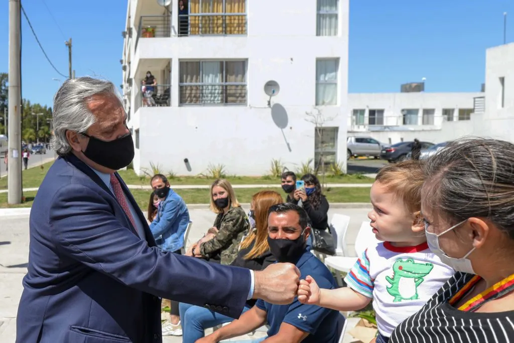 - TELAM 09102020 Buenos Aires: El presidente Alberto Fernández encabezó este mediodía el acto de entrega de viviendas para familias de las provincias de Tucumán, Santa Fe y Buenos Aires, en el predio Procrear de la localidad de Canning, en el partido bonaerense de Ezeiza. Foto Presidencia de la Nacion Cgl